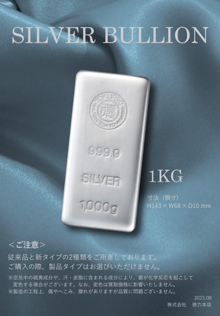 また、銀のインゴットの新タイプの1Kg に関しては「金」インゴット1Kgと似たようなデザインになっていることから、これから金と同様に投資対象として見て欲しいという徳力本店からのメッセージにもとれるデザインとなっています。