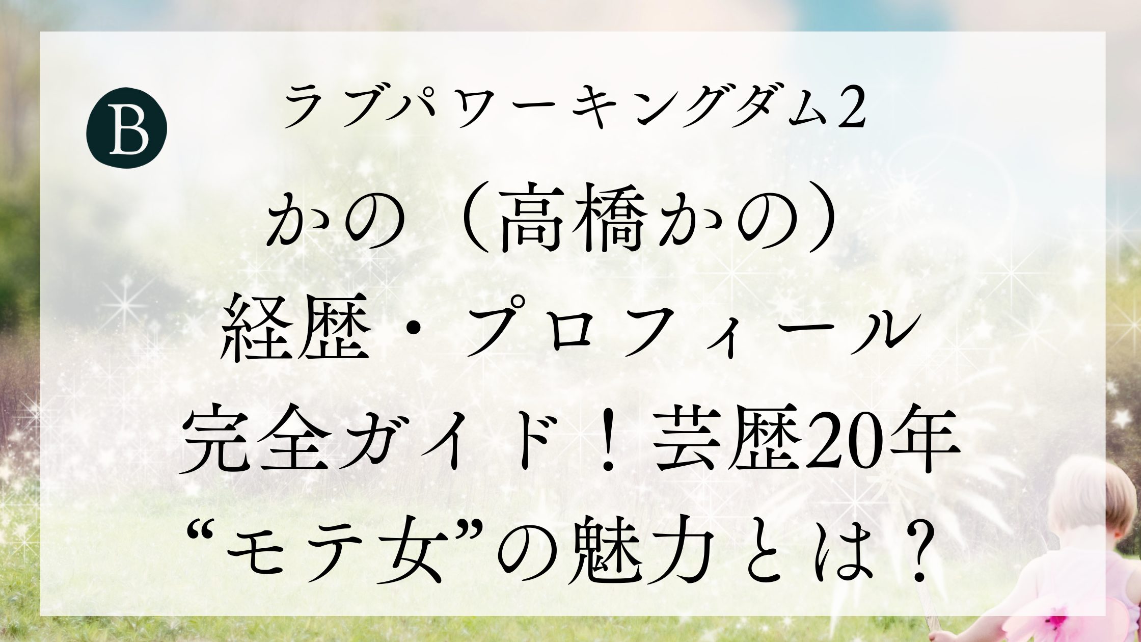 ABEMAで配信が開始された注目の恋愛リアリティーショー『ラブパワーキングダム2』(通称:ラブキン2)。 数々の“恋愛強者”が集まる中で、ひときわ透明感あふれる存在感を放っているのが、かの(高橋かの)さんです。