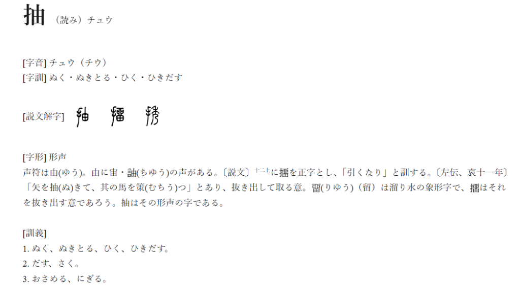 字通「抽」の項目を見る。