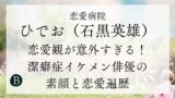 恋愛病院の男性メンバーに当てはめると、アームレスリング全国3位で筋肉自慢のまさかつ(雫石将克)、元Jリーガーで193cmの元アスリートのゆうと(小泉勇人)あたりが、スペック的にドンピシャかもしれません。もちろん元ホストで「仲間思い」を自称するりゅうせい(桑田龍征)も外せません。