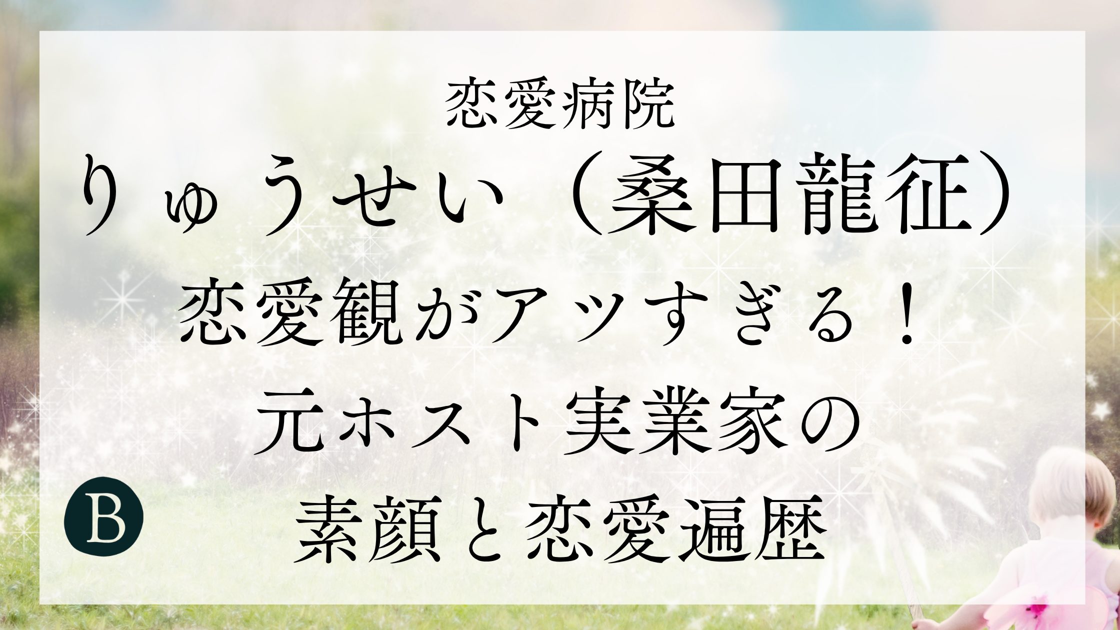 - 桑田龍征(40歳)はABEMA『恋愛病院』に「りゅうせい」として出演。元ホスト実業家の人生初恋リア参加。