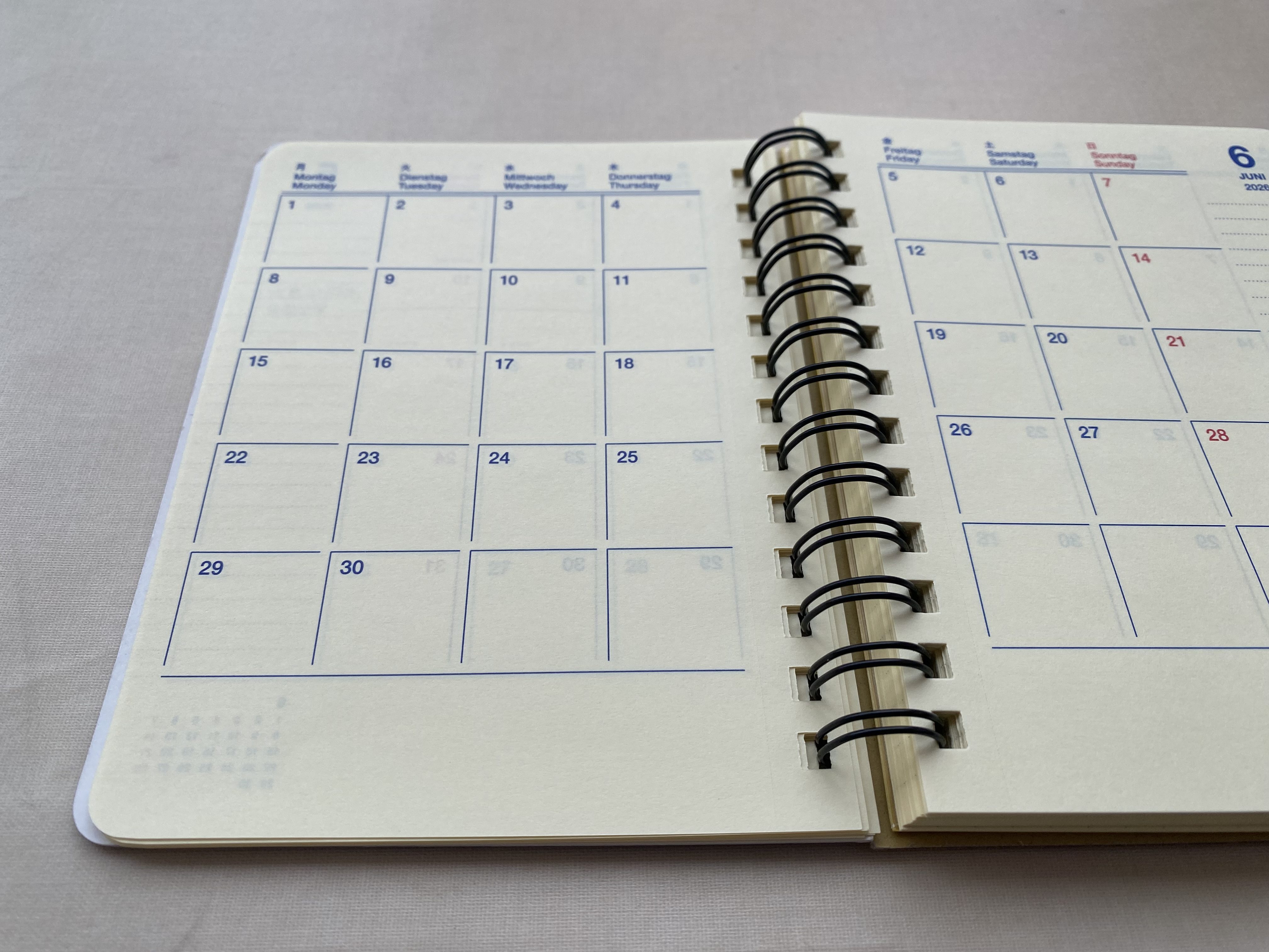 黄色いと言っていた紙は「これくらい黄色くないと安心しない」みたいな境地になってきてたまにキャンパスノートとかを見ると「白!!」とびっくりするほど。カレンダーも見慣れれば使いこなせてしまって、リング部分に手が当たるのも「そう、さして、手間ではない!」という境地に至るようになりました。