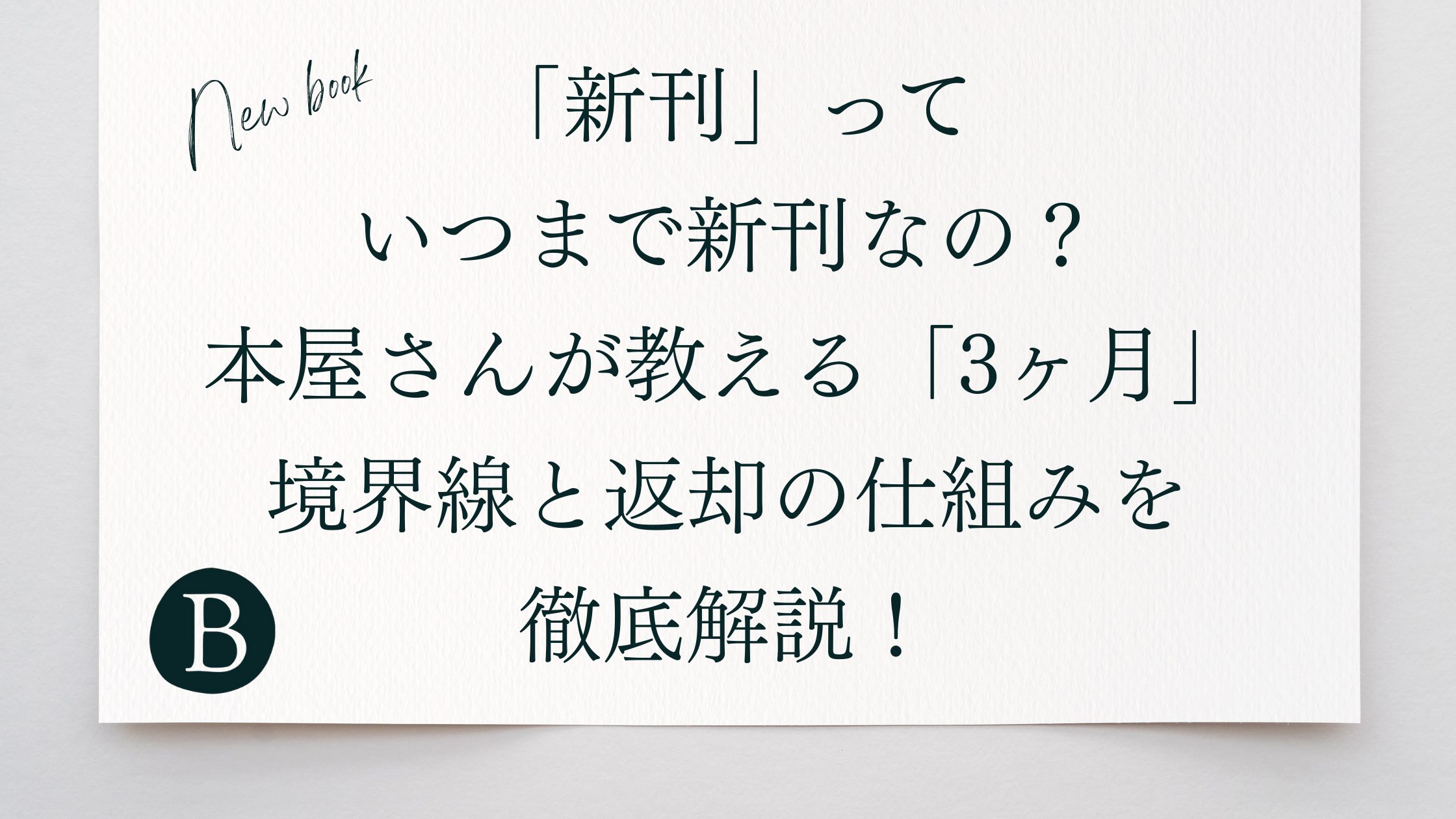なんで「新刊」が3か月なのかは出版流通の「委託販売制度」があるからです。