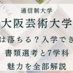 大阪芸術大学通信教育部は2001年に設置された通信教育課程で、芸術・文化を学ぶユニークな環境が特徴です。通信教育生でも芸術劇場やアートホール、図書館など多彩な施設を利用できます。芸術・文化に関わる司書職を目指す方にとって、個性的な学習環境です。