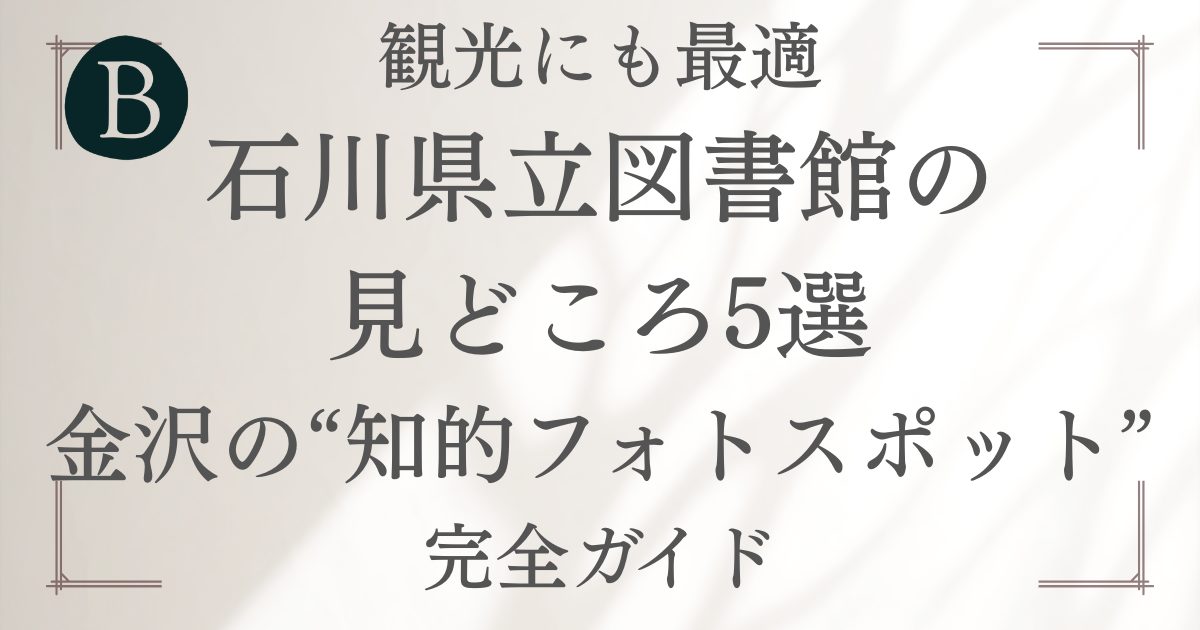 まなぶ 【観光にも最適】石川県立図書館の見どころ5選|金沢の“知的フォトスポット”完全ガイド 【観光にも最適】石川県立図書館の見どころ5選|金沢の“知的フォトスポット”完全ガイド 2025.06.24 まなぶ