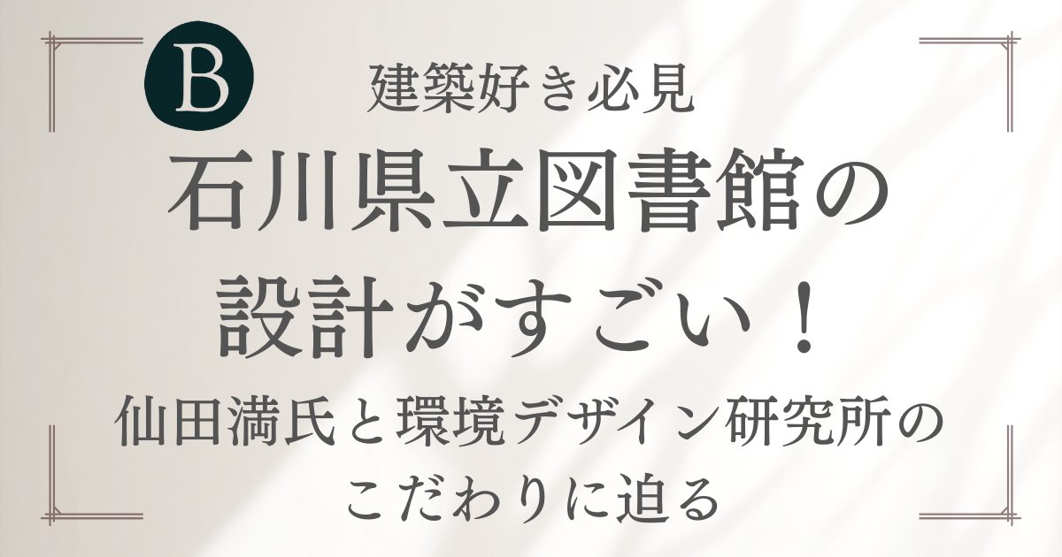 まなぶ 【建築好き必見】石川県立図書館の設計がすごい!仙田満氏と環境デザイン研究所のこだわりに迫る 【建築好き必見】石川県立図書館の設計がすごい!仙田満氏と環境デザイン研究所のこだわりに迫る 2025.06.23 まなぶ