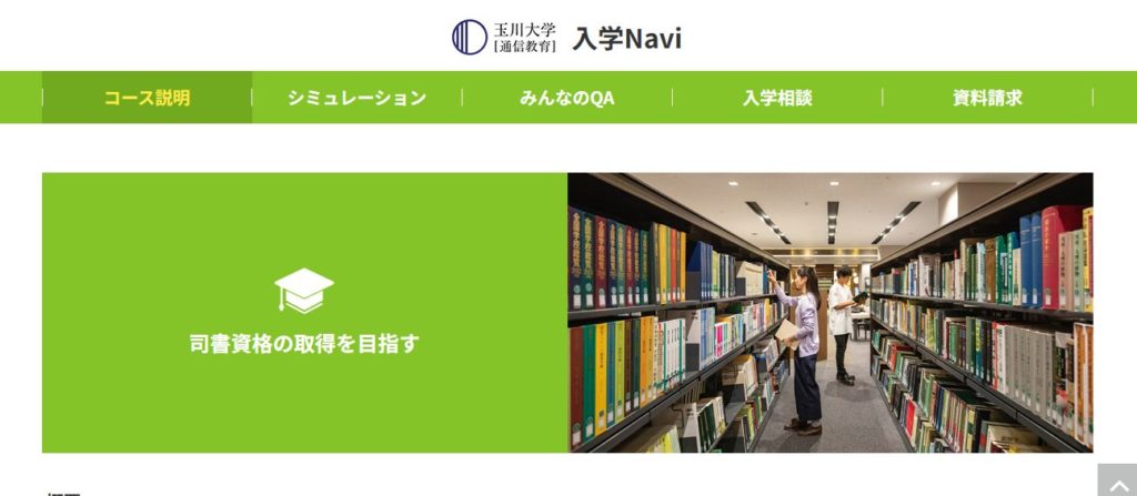 - 「あまり大学に通わなくても取れること、スクーリングなどで通学する必要があっても行きやすい場所にあること、なんとなく玉川のイメージが良かったことが決め手だった。玉川大学の通信教育課程で、司書資格を取得した」