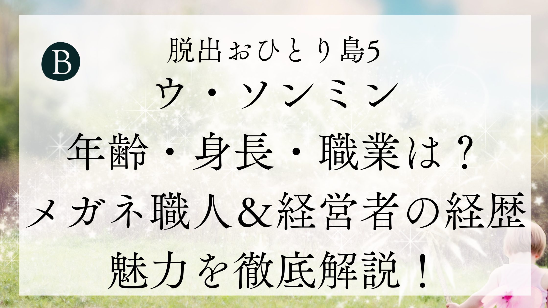 『脱出おひとり島 5』で注目を集めるウ・ソンミンさんは、186cmの長身と眼鏡職人兼経営者という独自のキャリアを併せ持つ、非常に魅力的なメンバーです。
